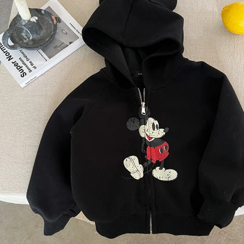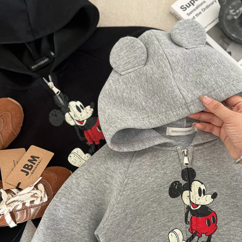 Buy Kids Clothes Baby Boys Jacket Cute Cartoon Mickey Mouse Ear Zipper Hoodies Sweatshirt Kawaii Girls Casual Style Coat Cotton